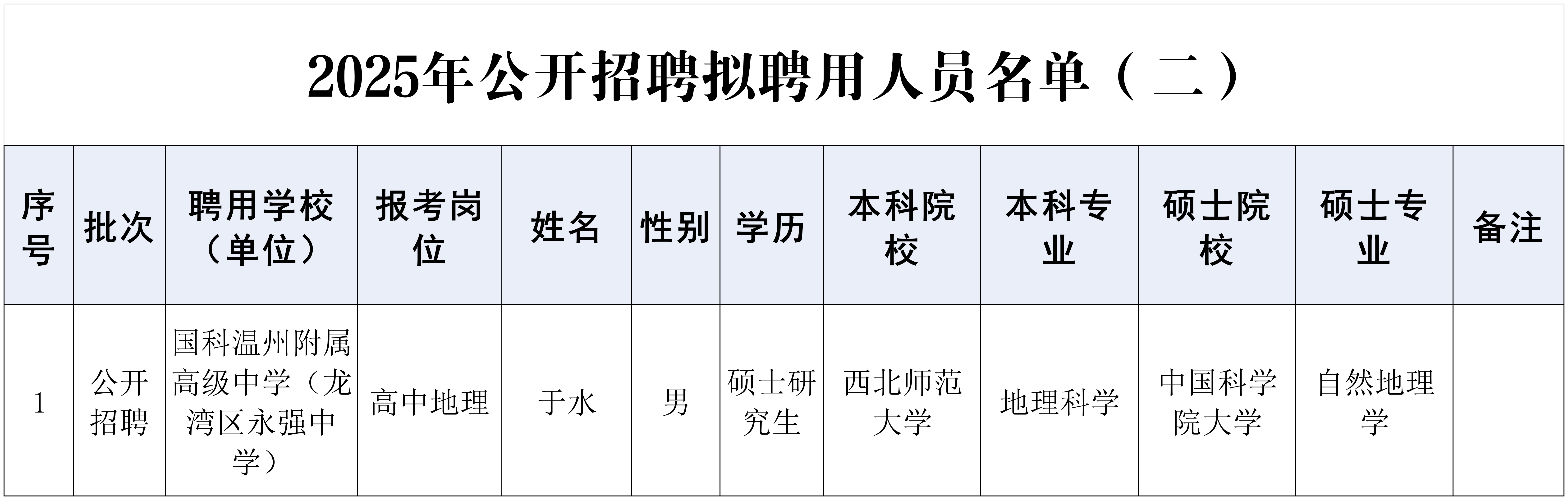 2025年温州市教育局直属公办学校面向社会公开招聘教师和工作人员拟聘用人员公示(二)